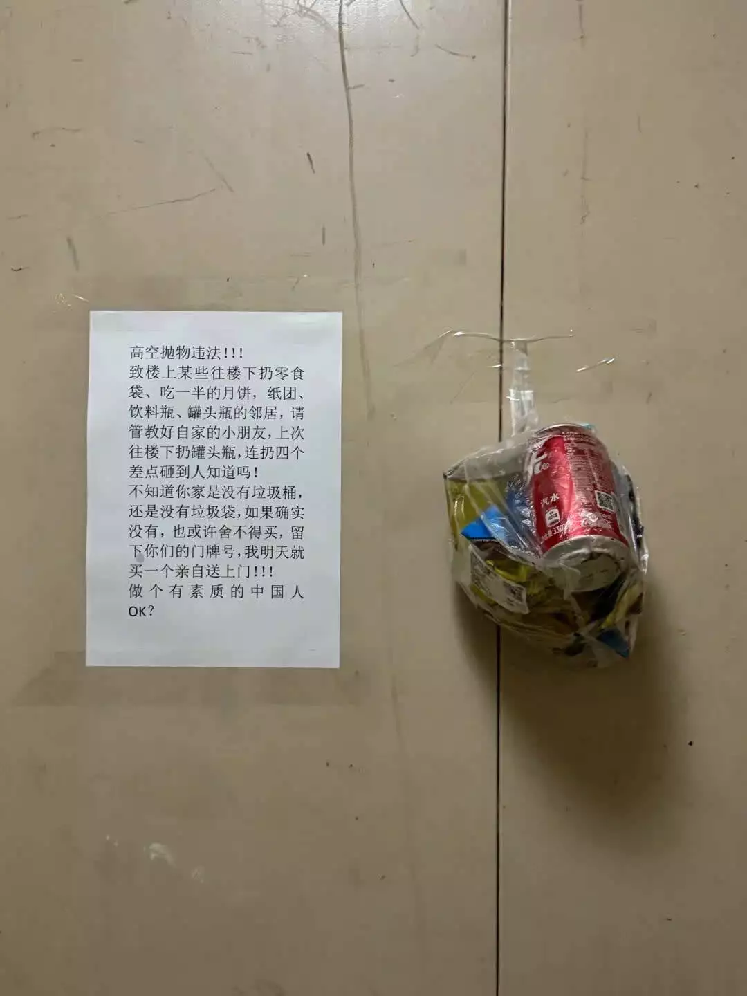 高空抛物困扰着众多一楼住户,毕竟没素质的人不在少数。常在小院里能发现从高空扔下的杂物,像外卖袋、烟头之类,看着就心烦。